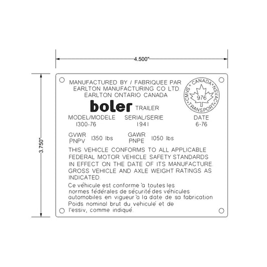 Boler Custom Engraved ID Plate English/French