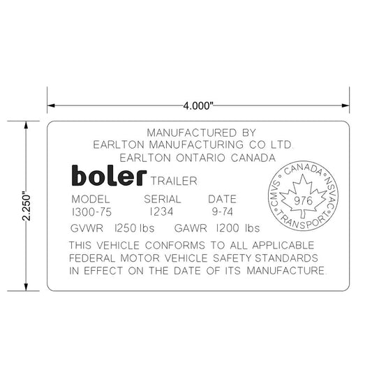 Boler Custom Engraved ID Plate English Only