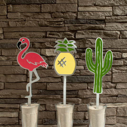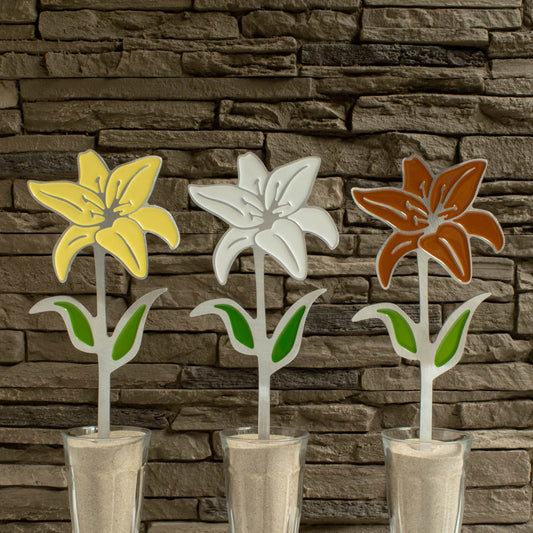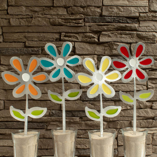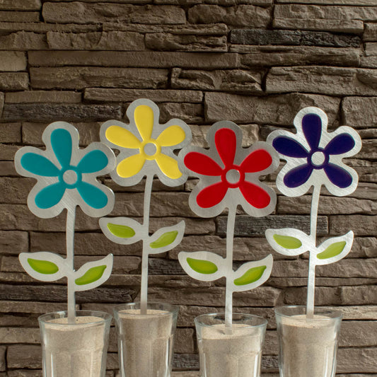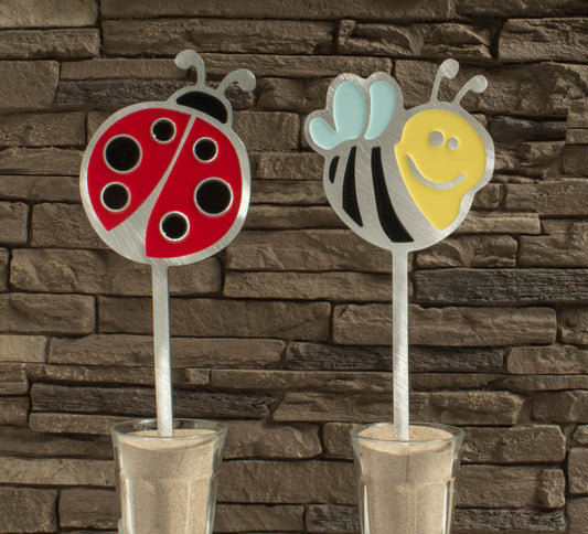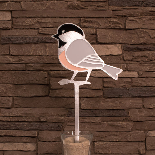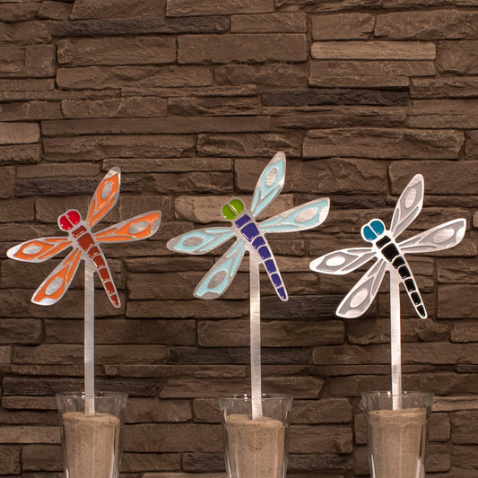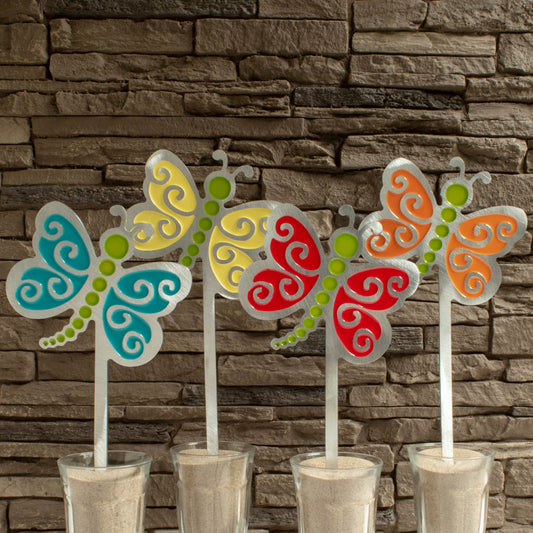 Fancy accents for planters & garden areas. Great indoors and out. Made from solid aluminum and will not rust or tarnish. The height listed includes the stake.
