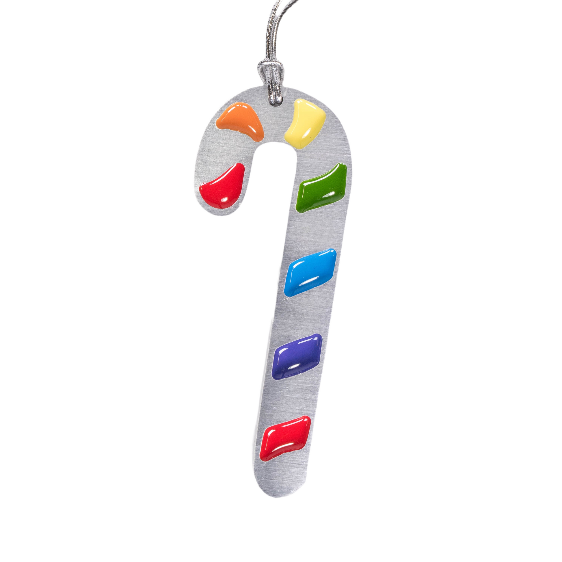 Made from lightweight aluminum. Colorful resin infill. Design is one sided. Approximate size 4.2".