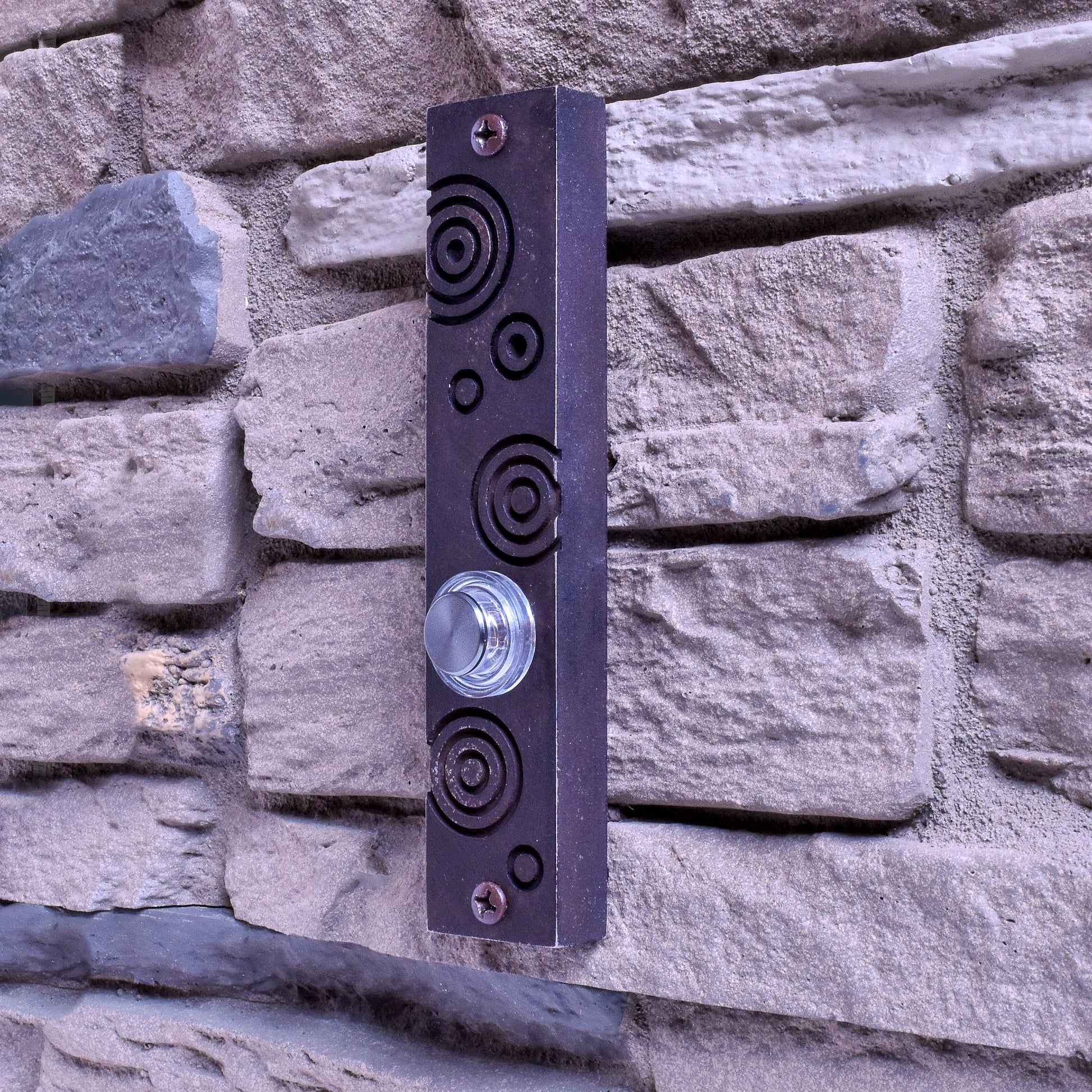 This Dizzy's no ditz – class up your entryway with classic concentric circles. Choose from an aluminum, black or bronze patina finish. The doorbell button is backlit with a white LED light.
