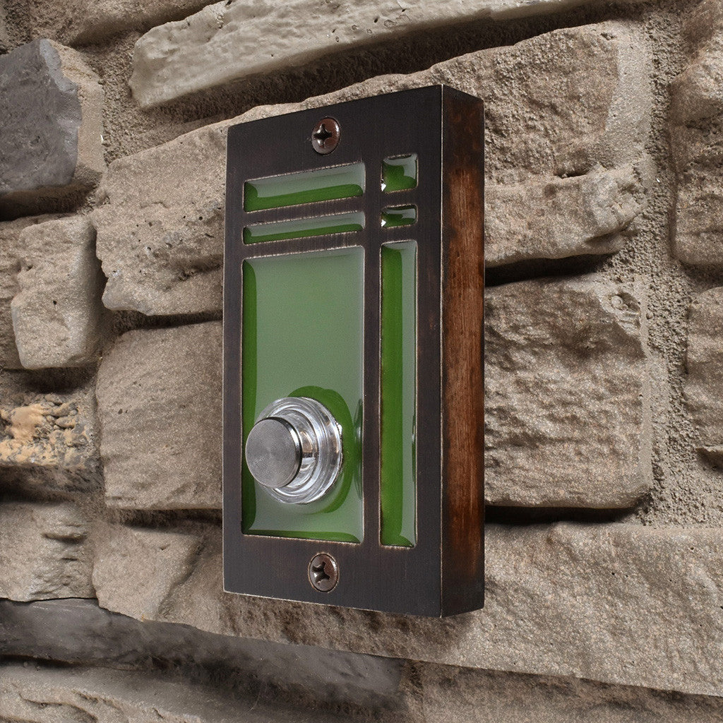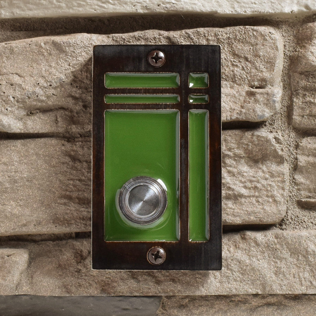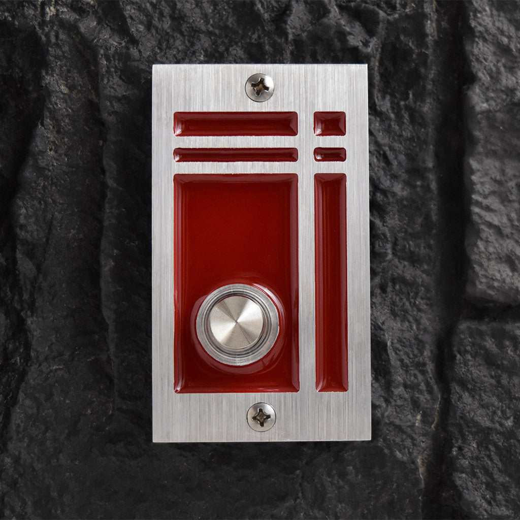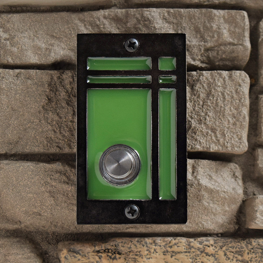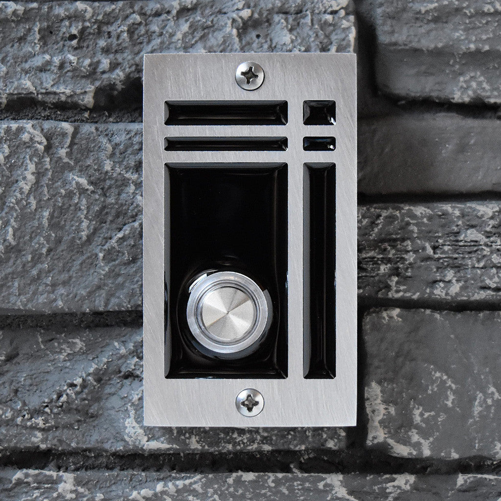 Architecture fans will love this subtle homage to architect Frank Lloyd Wright. Wright believed in designing structures in harmony with the environment, and now you can harmonize your home with Frank, in your choice of an aluminum, bronze or black patina and a custom resin color. The doorbell button is backlit with a white LED light.