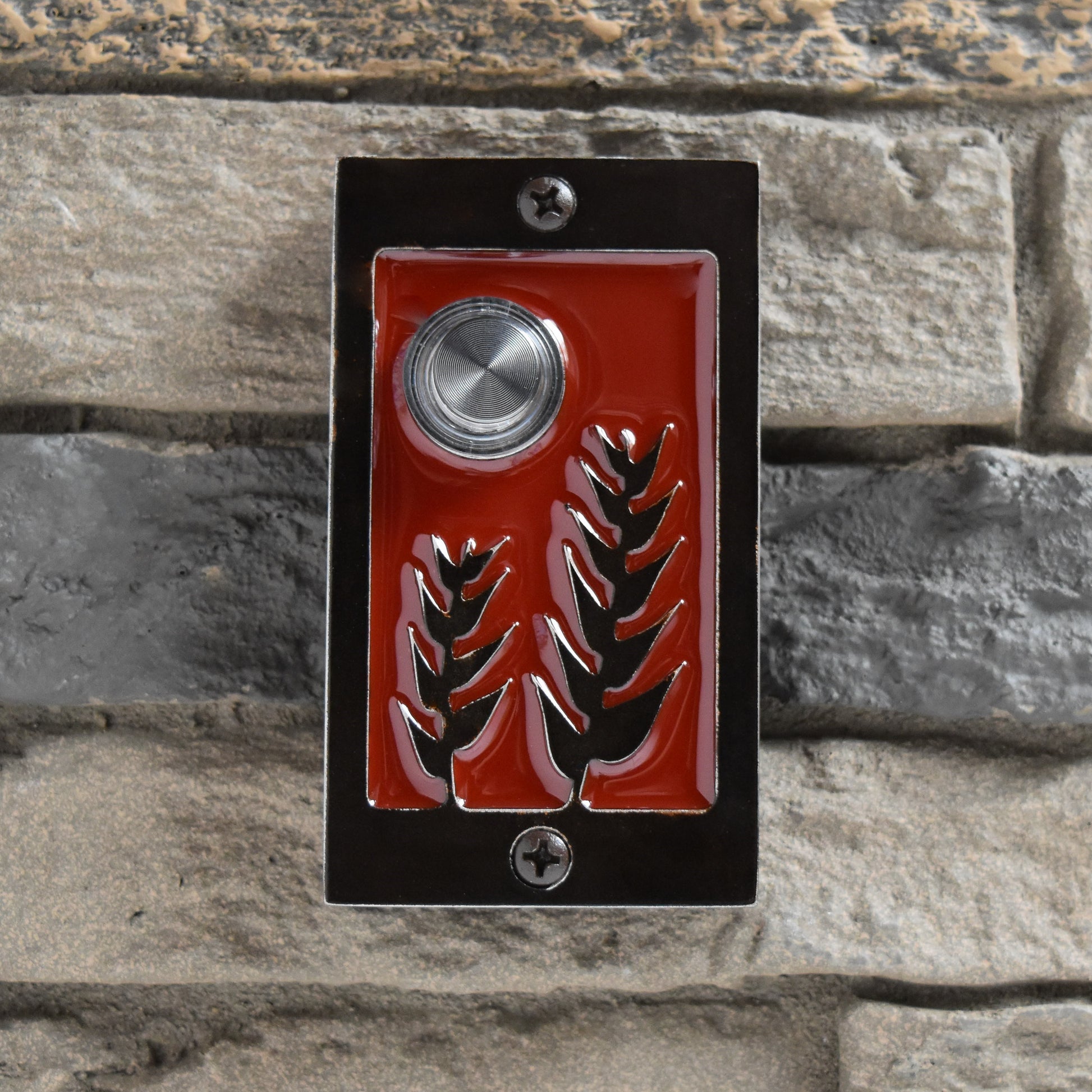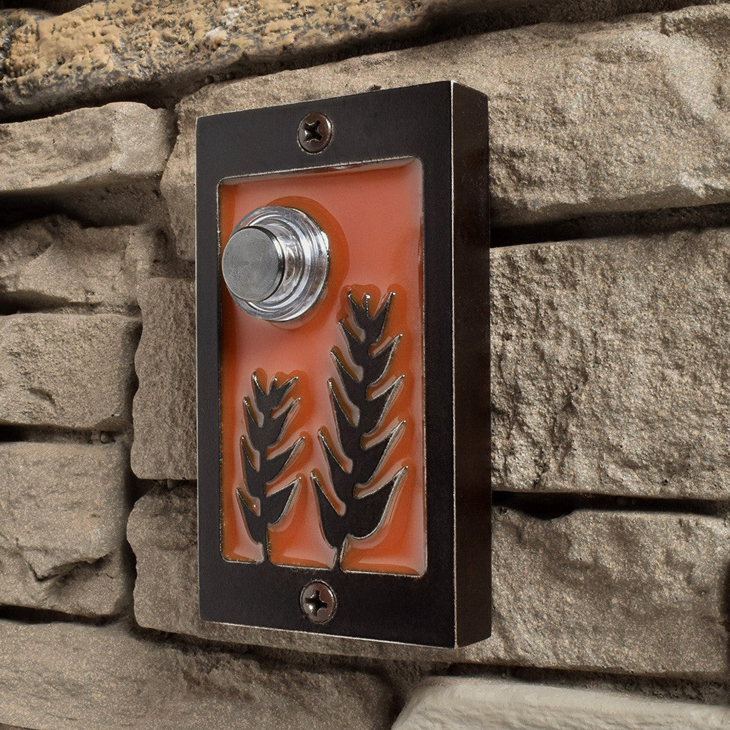 Give your guests a prairie welcome with Harvest. Harvest comes in an aluminum, black or bronze patina finish with your choice of background color. The button is backlit with a white LED light.