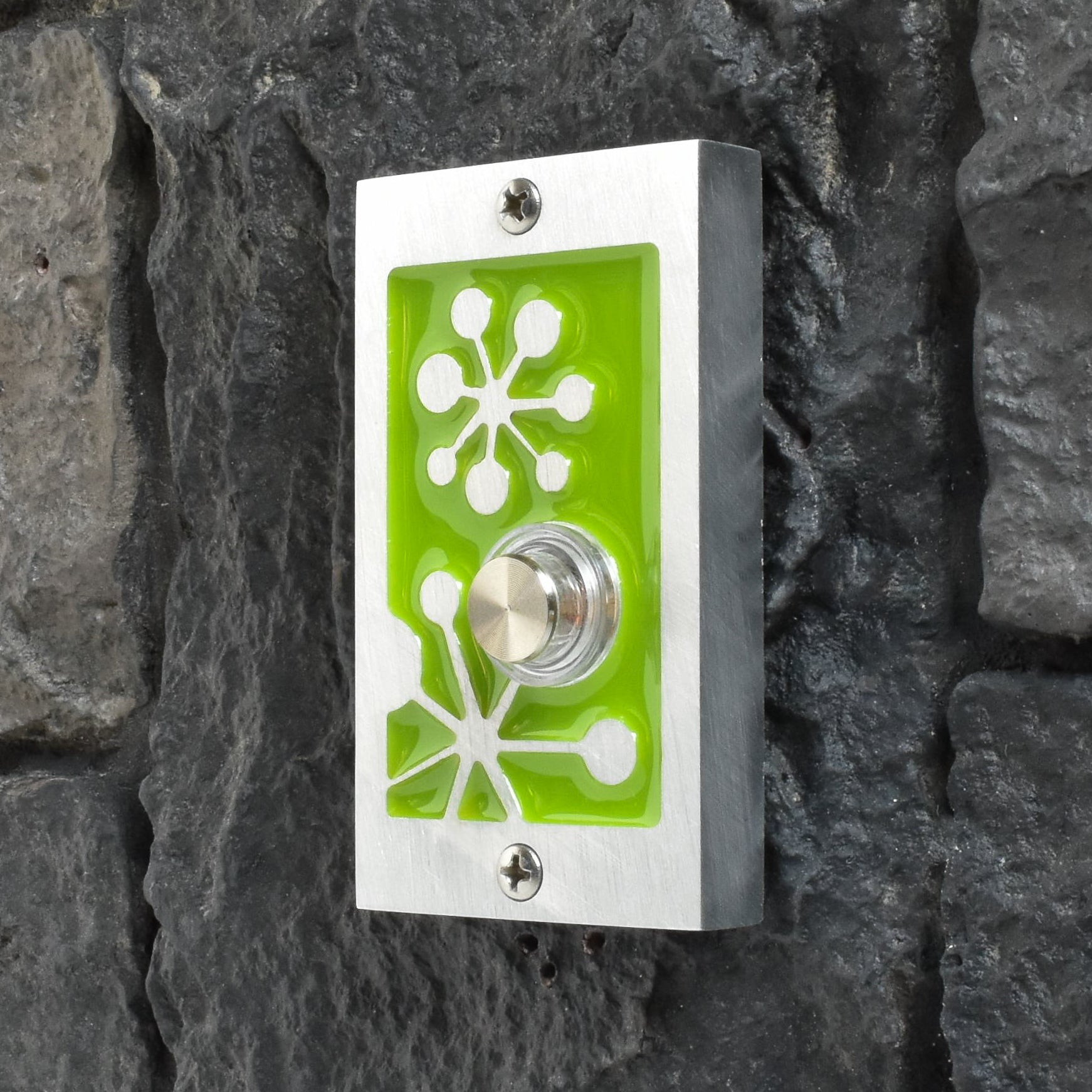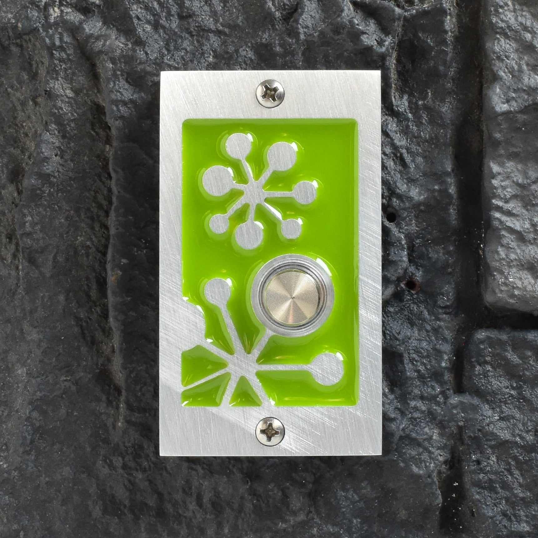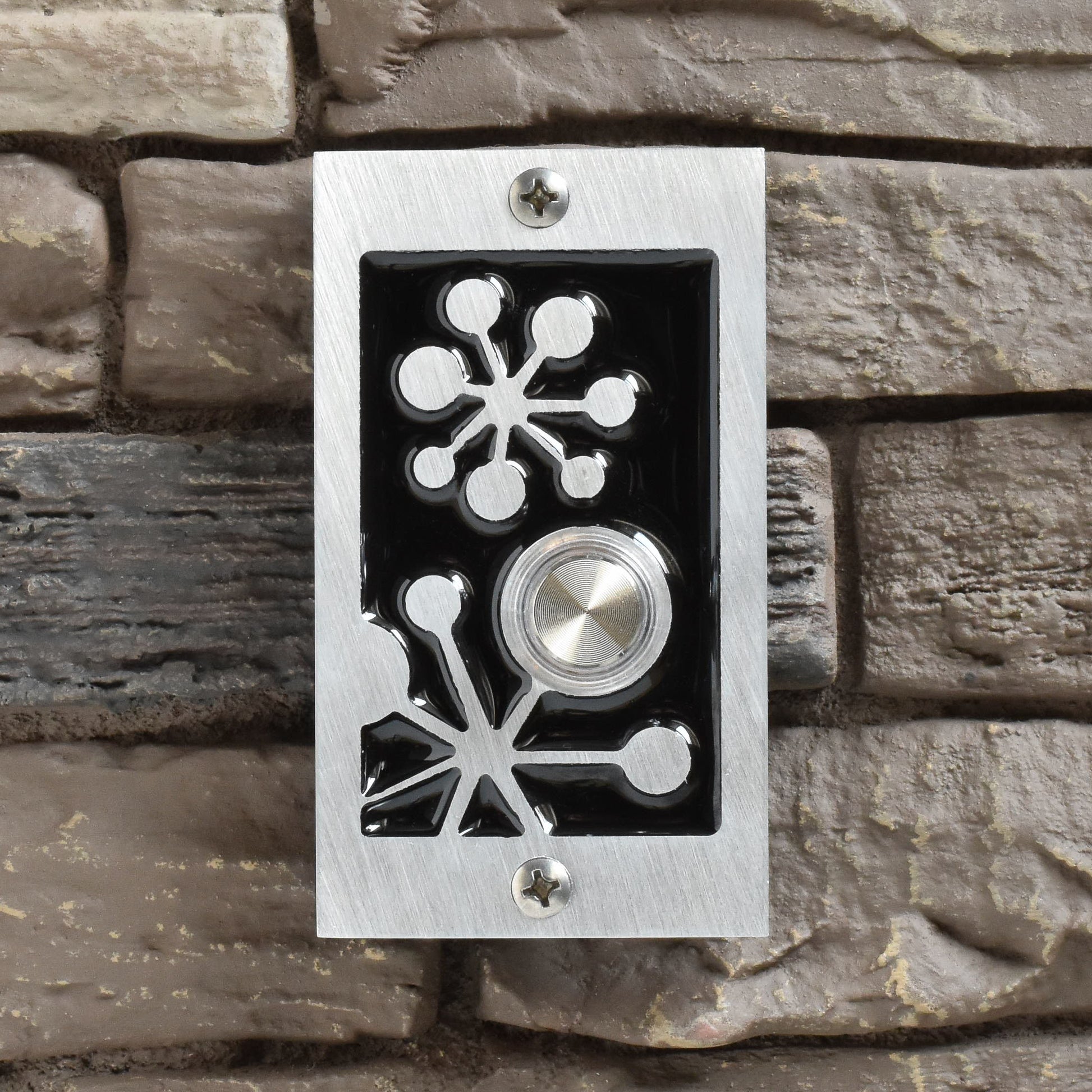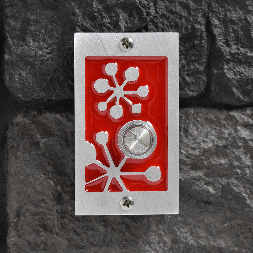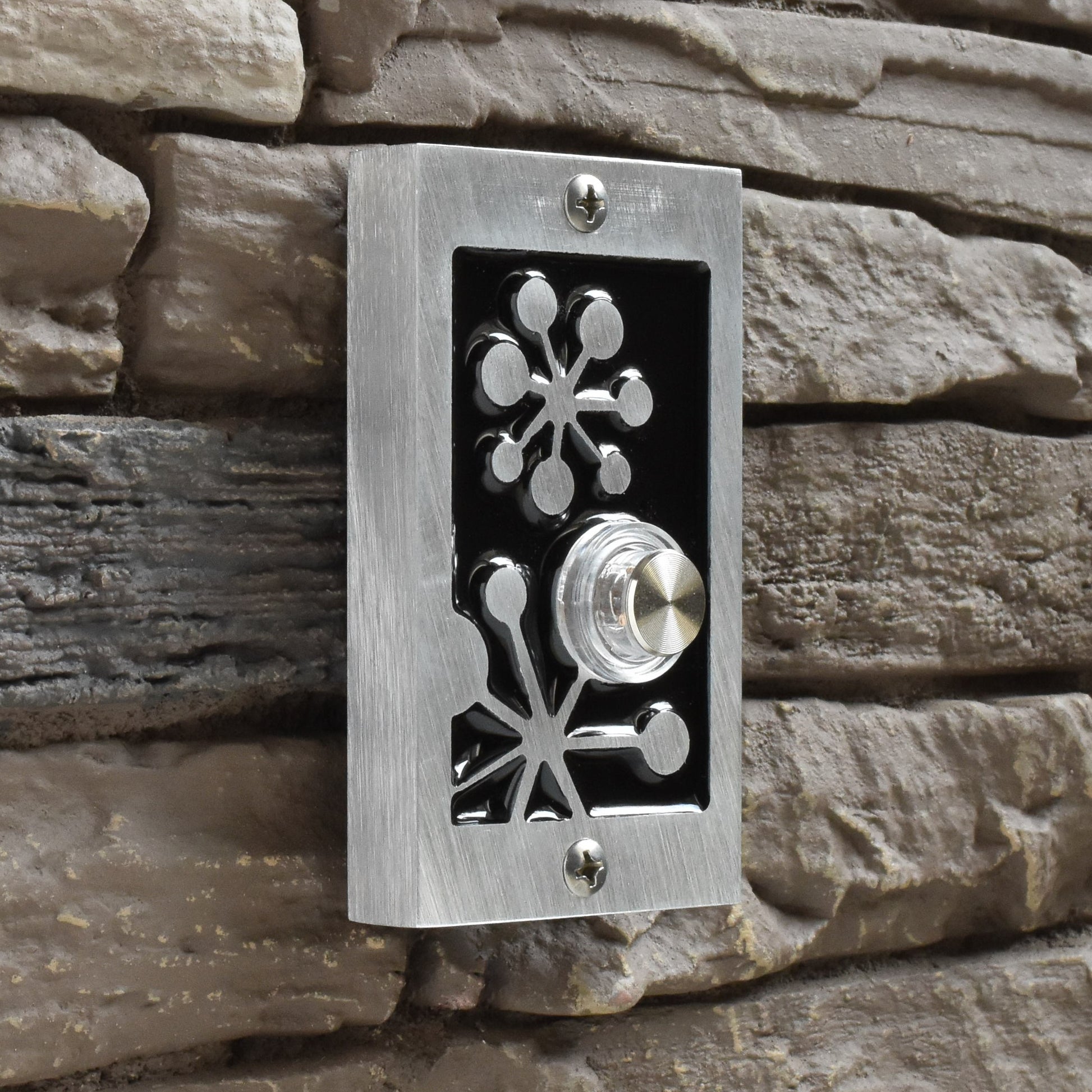 Add some retro fun to your front door with Jumpin' Jacks. This machined aluminum doorbell comes in an aluminum, black or bronze patina finish with your choice of background color. The button is backlit with a white LED light.