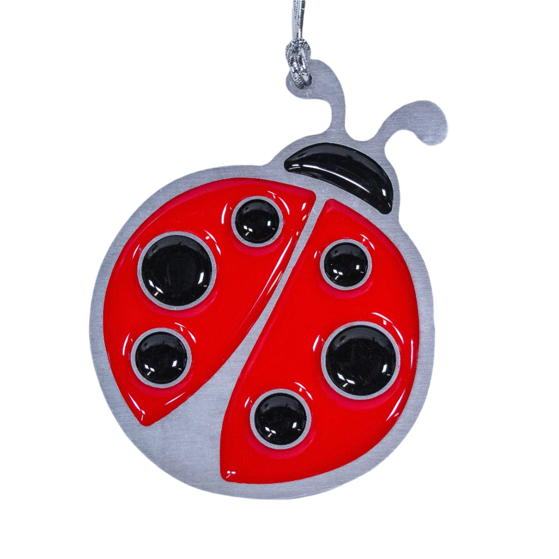Made from lightweight aluminum. Colorful resin infill. Design is one sided. Approximate size 3".