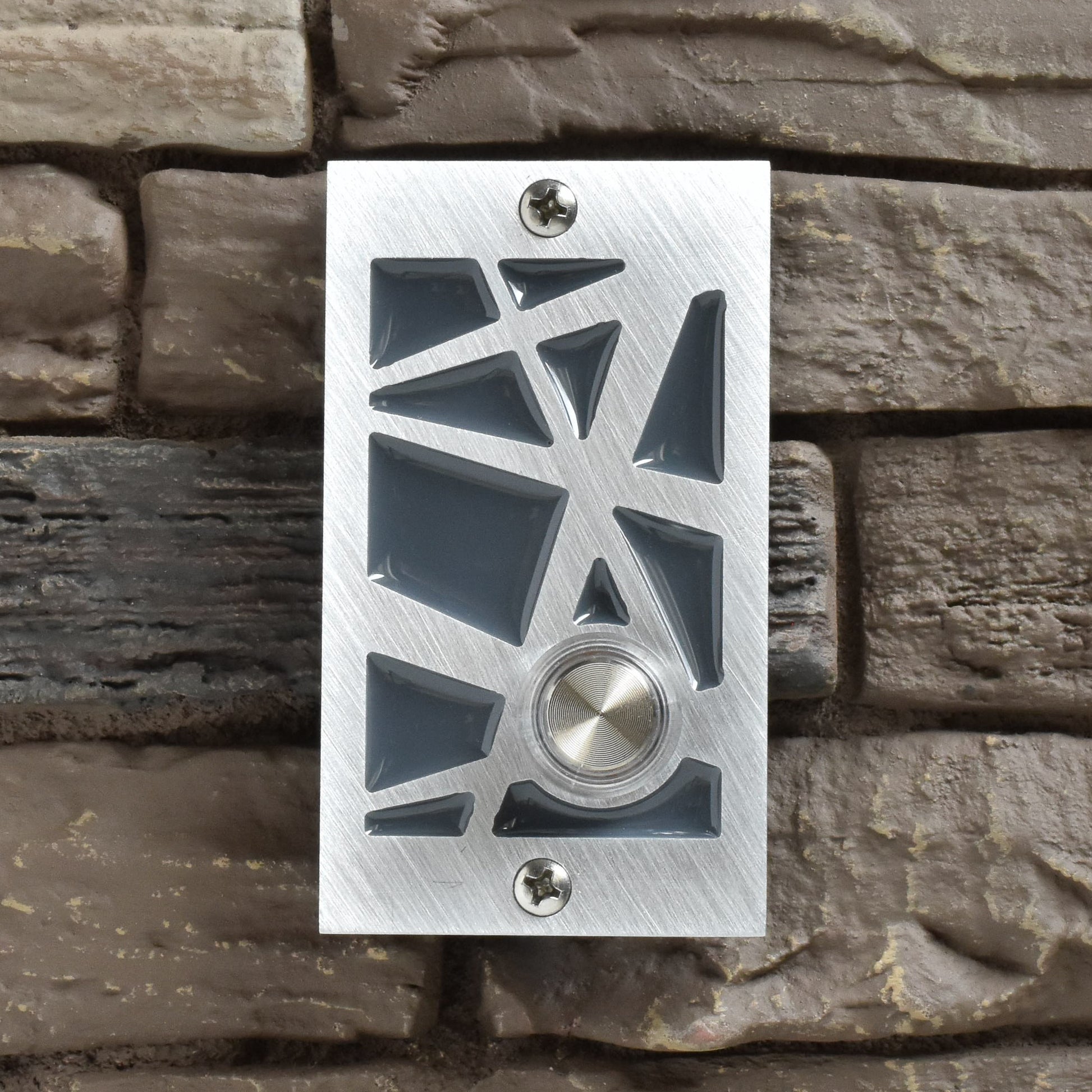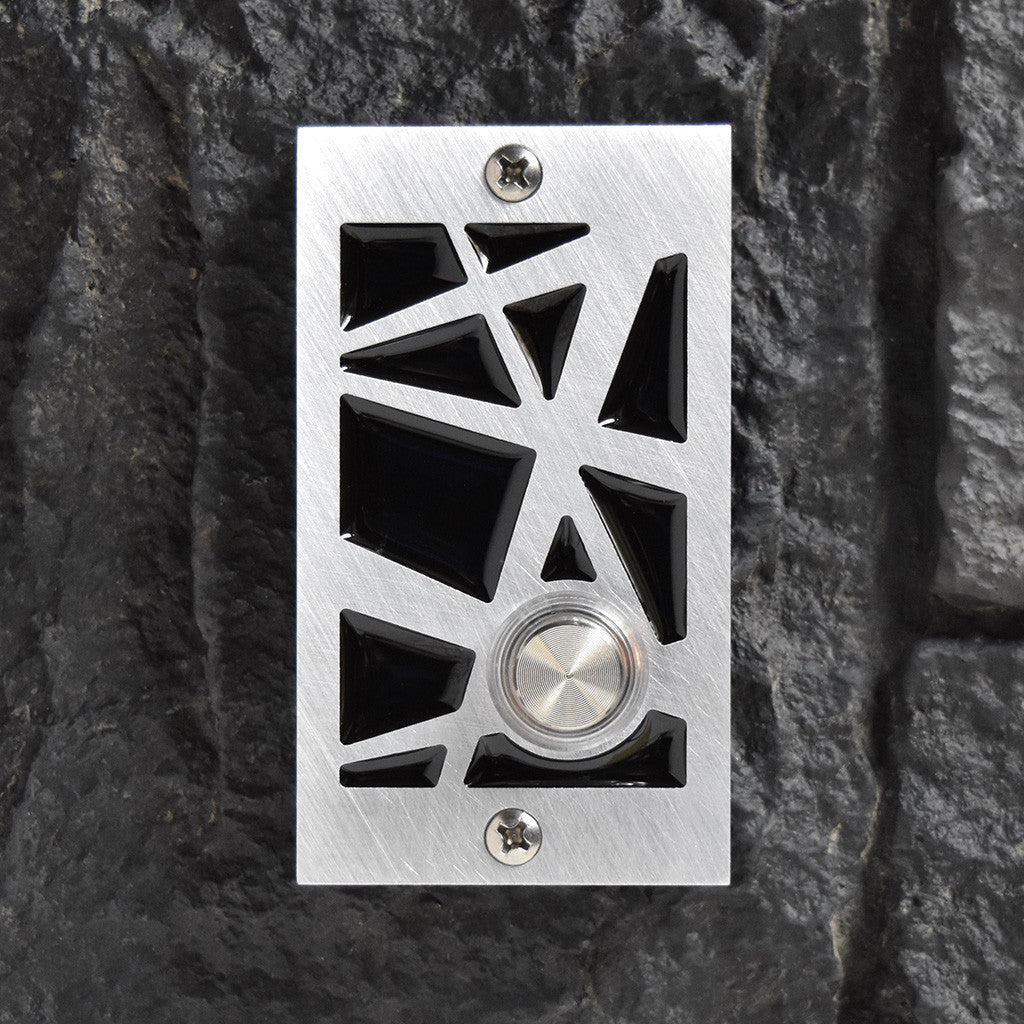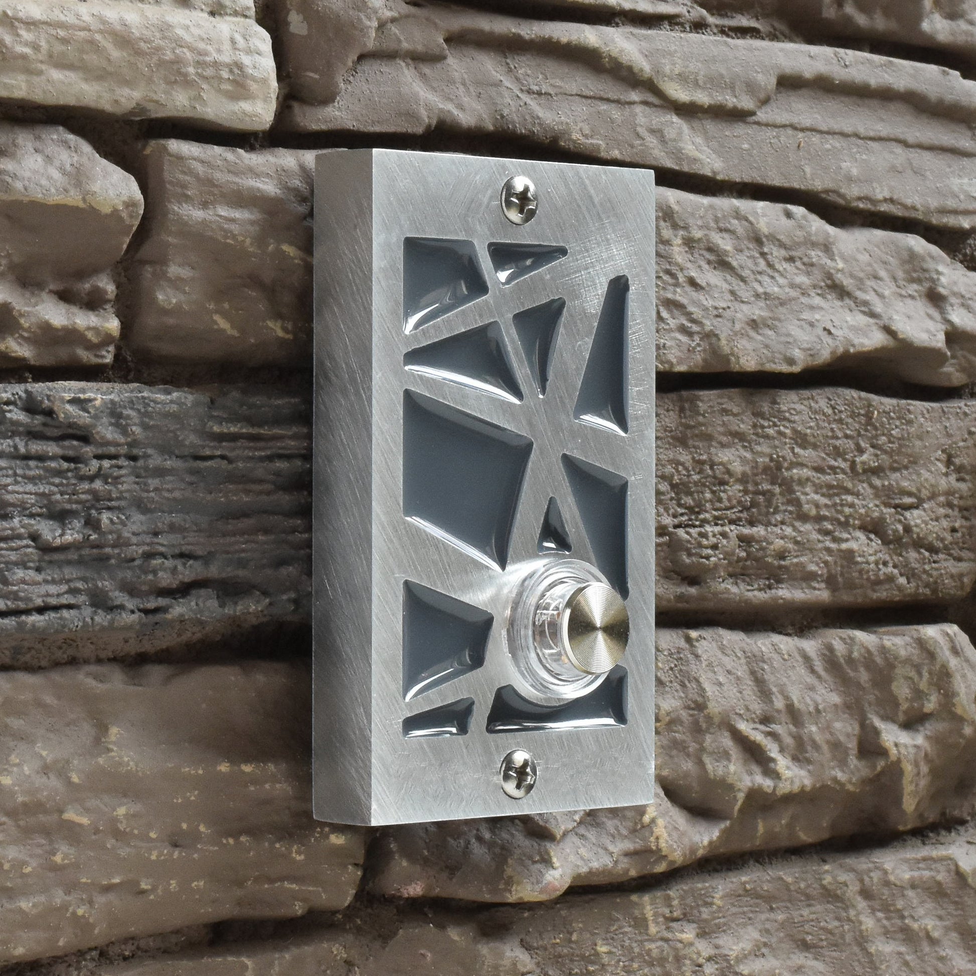 No sharks here, just some frickin' Lazer Beamz to awesome up your front door. Your choice of aluminum, bronze or black patina finish and one color background resin. The doorbell button is backlit with a white LED light.