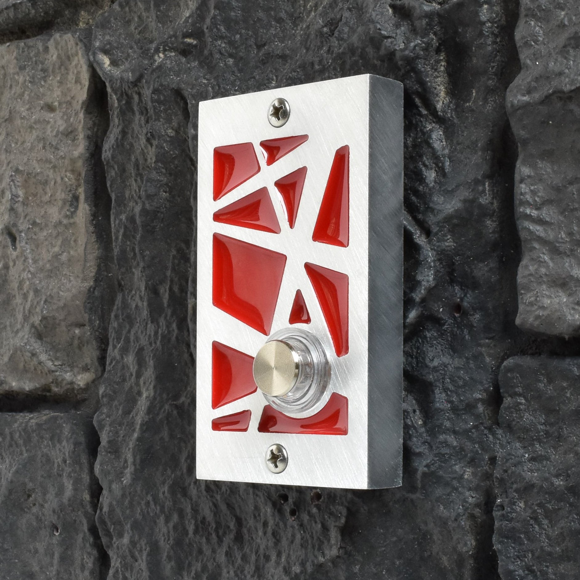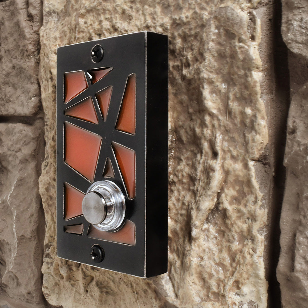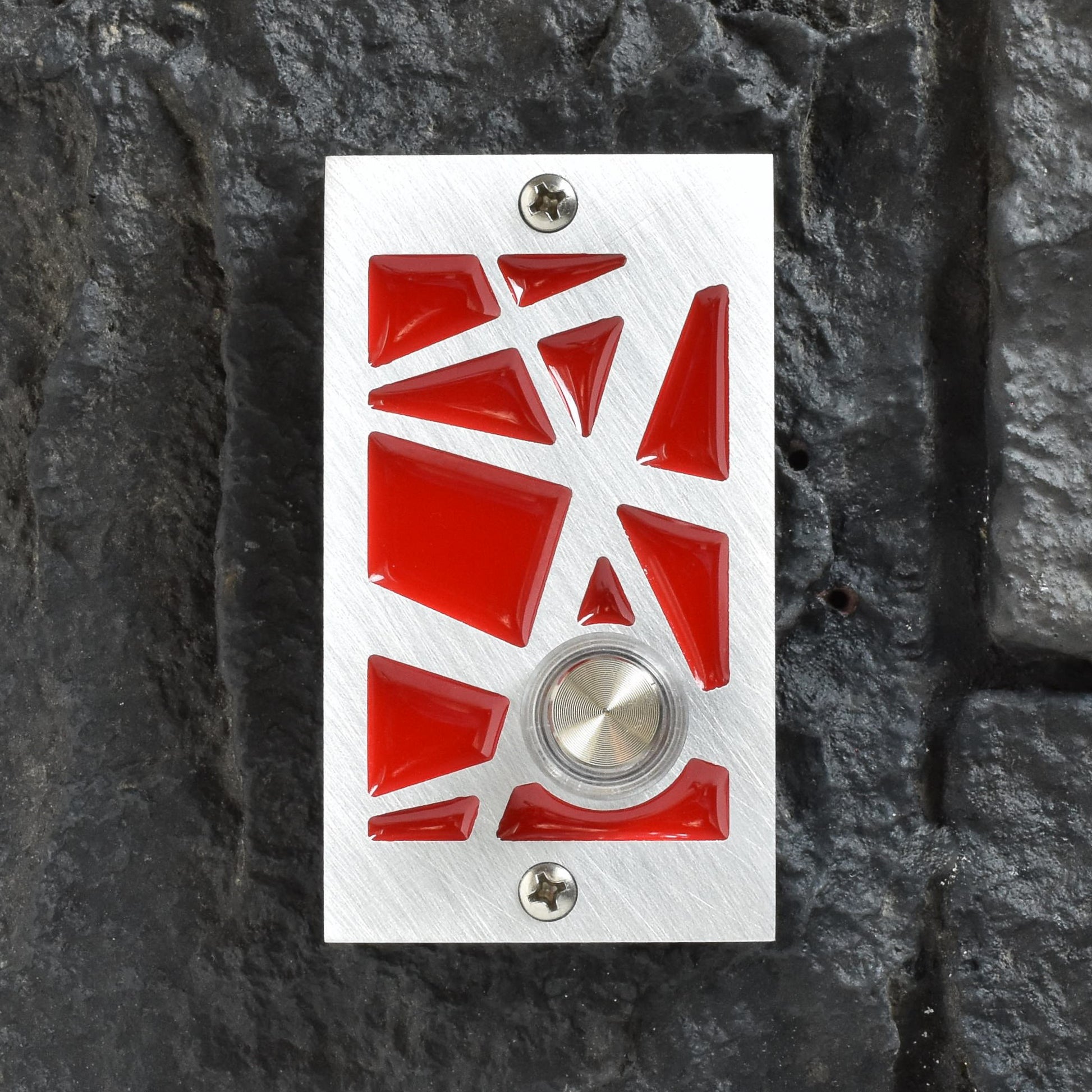 No sharks here, just some frickin' Lazer Beamz to awesome up your front door. Your choice of aluminum, bronze or black patina finish and one color background resin. The doorbell button is backlit with a white LED light.