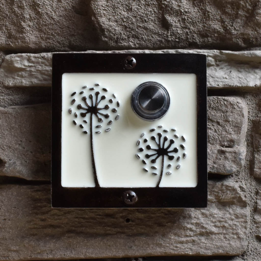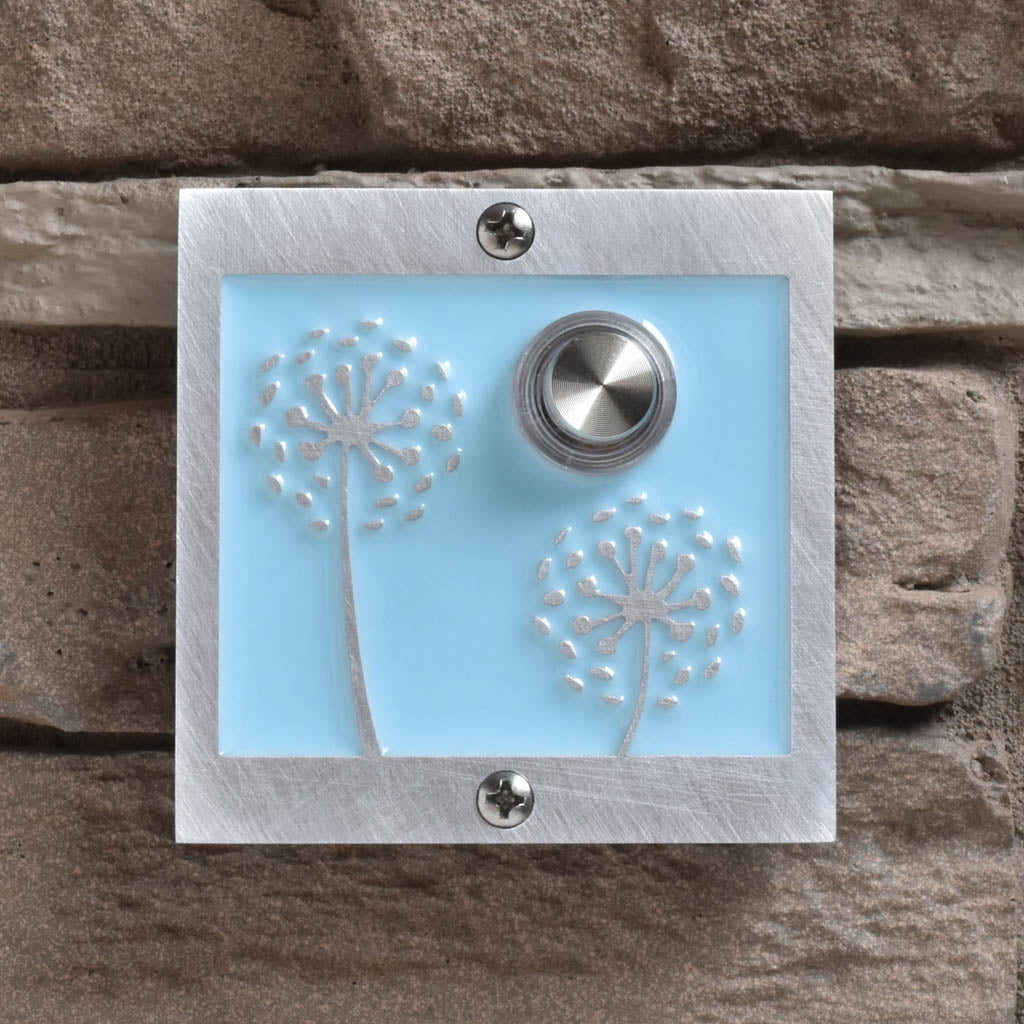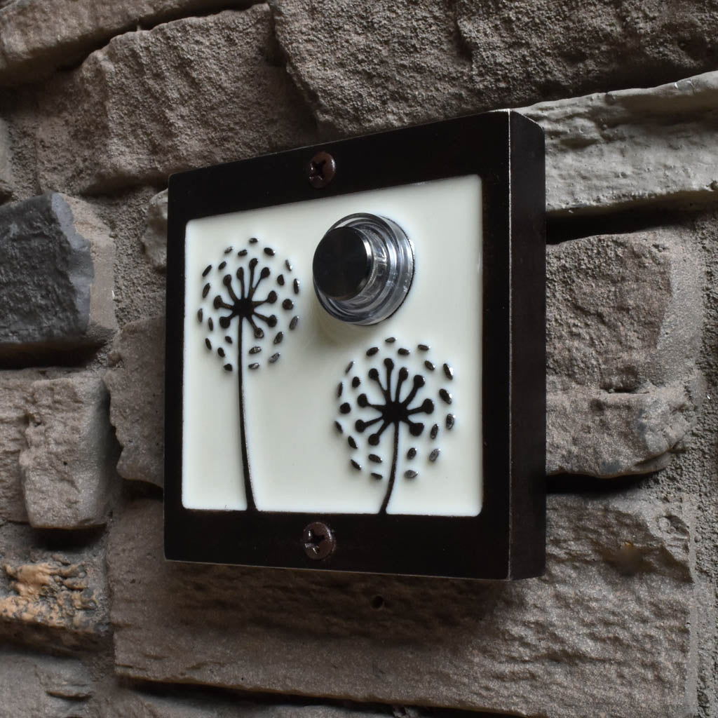 Close your eyes and make a wish! These beautiful dandelion puffs will welcome any guest in style. Choose one resin color for the background and an aluminum, bronze or black patina finish. The button is backlit with a white LED light.