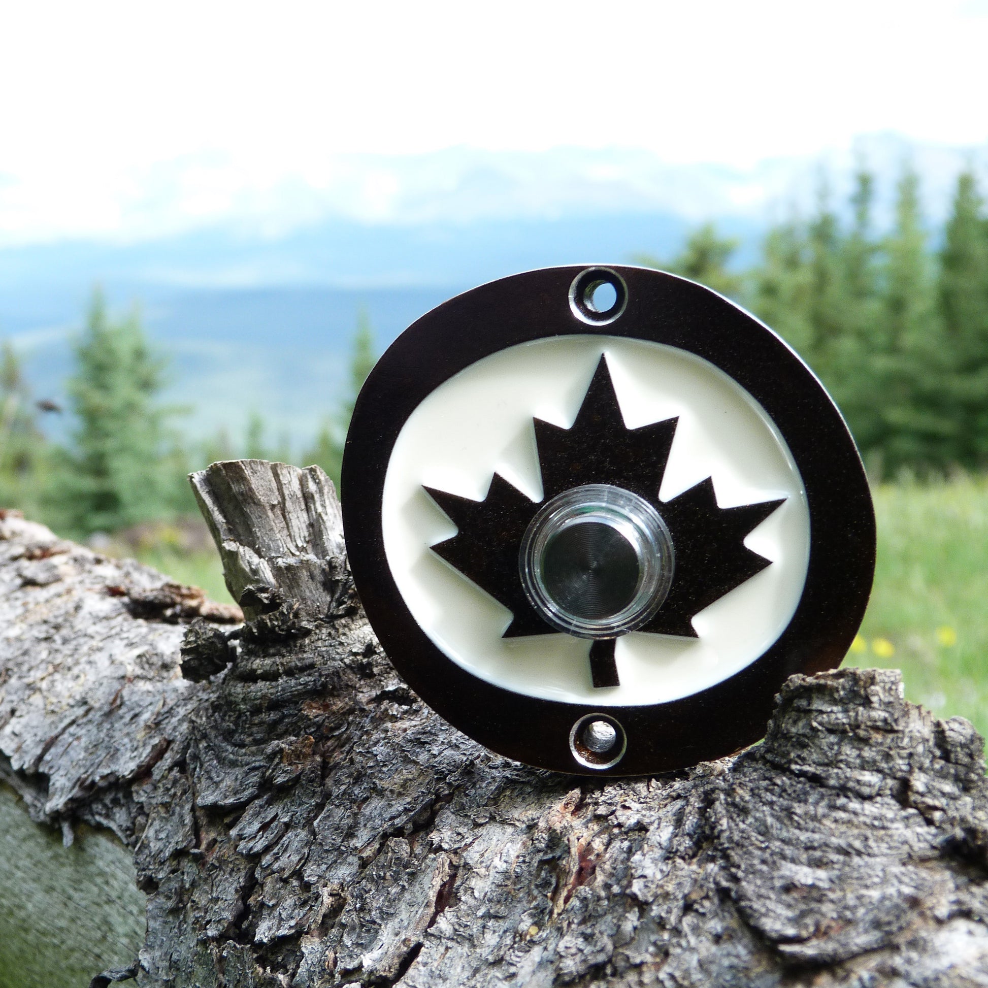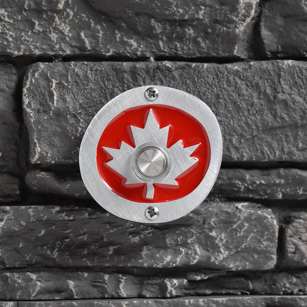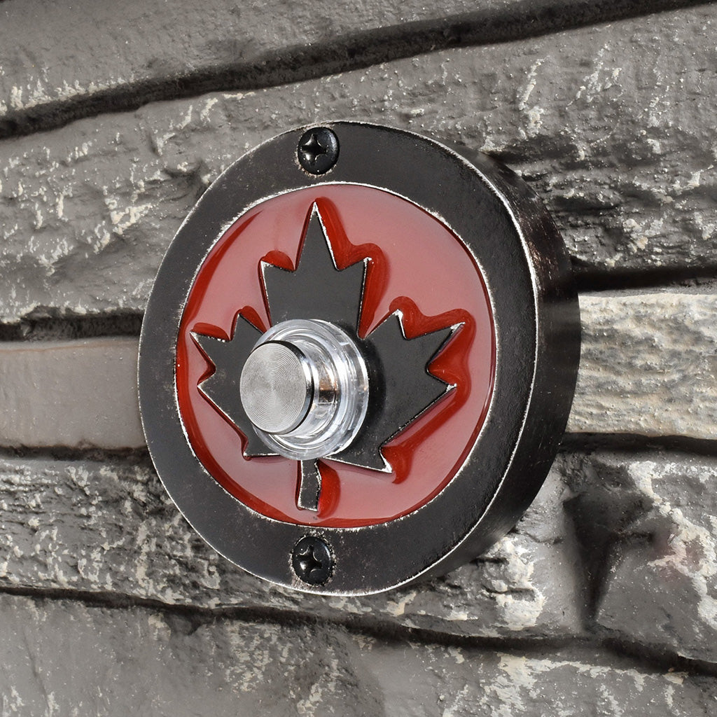 Put your Canadian pride on display with this fun maple leaf doorbell. Comes in your choice of aluminum, bronze or black patina and custom resin color. The doorbell button is backlit with a white LED light.